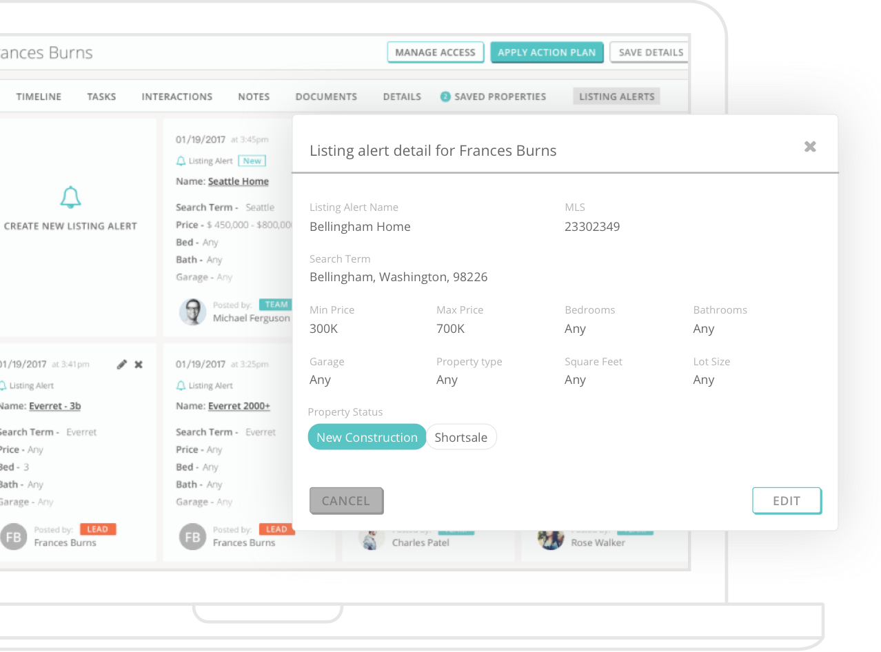 Get massive amounts of interested buyers and sellers to make action with lead capture tools that provide them with value and you their contact information. Feed leads from all sources into your CRM to auto assign and route for quick follow up.