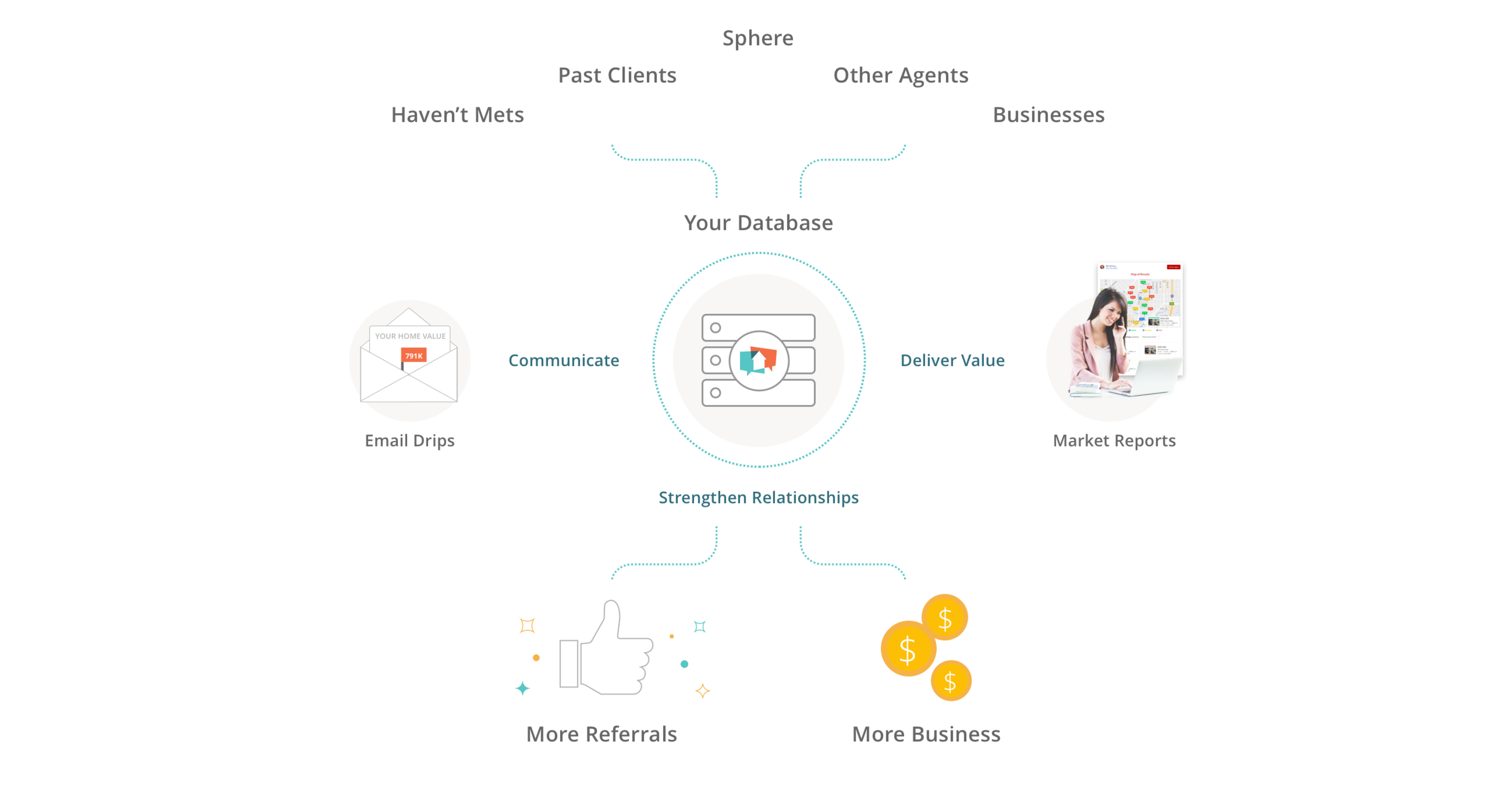 Your database is your biggest asset for referrals and repeat business. Maintain strong relationships with automatic email follow up and market reports to let past clients know you are still their go-to agent.